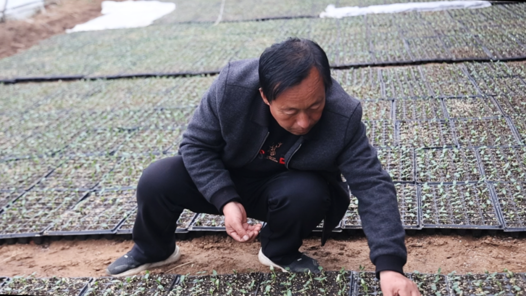 新丰园科技有限公司技术员、高级农艺师刘永军说:“新丰园公司今年总共引进了省农科院的7大品种,用的苗子有朝天椒、线椒、甘科四号,还有西红柿,然后有兰杂二号茄子、黄瓜、脆瓜、甘兰,它的抗病力比较强、产量比较高,目前总共育苗是1000多万株,苗子目前基本处于出苗阶段,长得特别好,预计在五月中旬左右就可以给农户发放。”