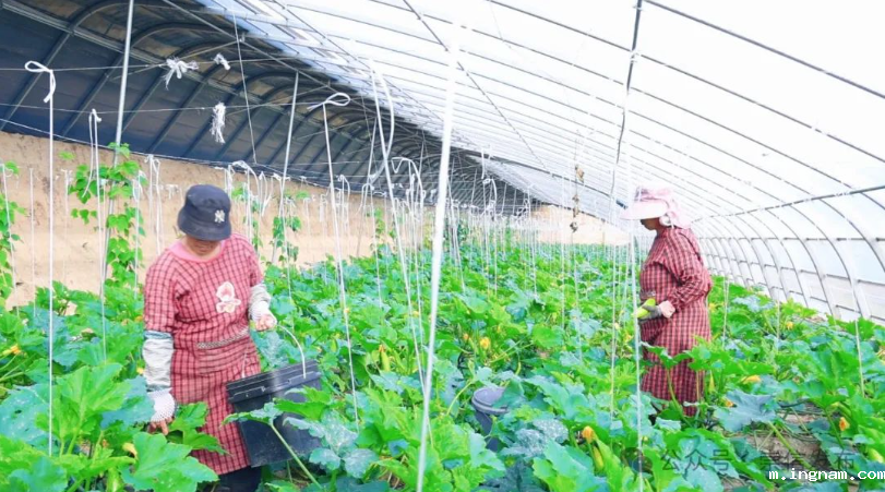 时下,云开app官方网站下载县锦屏镇平头沟村设施蔬菜种植基地,一片生机勃勃的景象映入眼帘。硕大的叶片紧密相连,在绿叶的掩映下,西葫芦郁郁葱葱、长势喜人,工人们忙碌地穿梭其间,忙着采摘成熟的西葫芦。