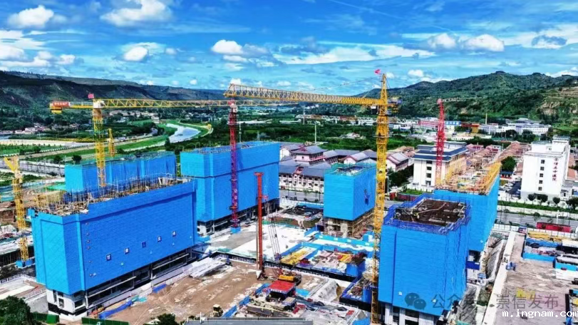 记者高亮:大家好,我现在所在的位置是崇信县世纪花园D区项目的建设现场,在我身后高耸的塔吊正在精准运送建筑材料,勤劳的工人挥洒汗水,在钢筋水泥间精耕细作,绘就了一幅如火如荼的建设画面。