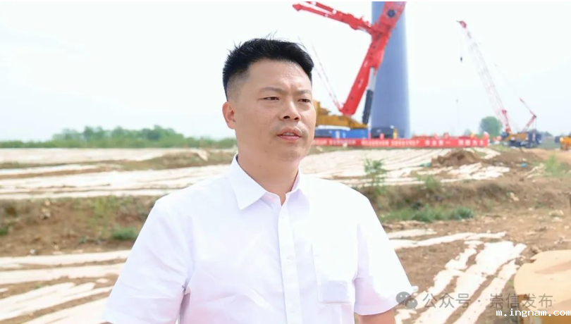 出镜记者高亮:“大家好,我现在所在的位置是崇信县10万千瓦风电项目二期工程建设现场,在我的身后,与蓝天同框的风机便是二期项目首台完成吊装的混塔风机。近期,该项目通过科学调配施工力量,多线并进抢抓工期,已全面按下建设'加速键'。”
