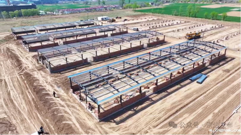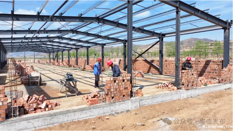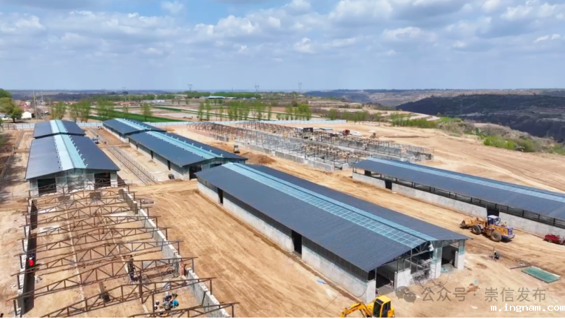 在崇信县肉牛育种创新能力提升暨陇通源5000头红牛养殖场建设项目现场,记者看到一座座钢架结构的棚舍主体结构已建成,建设现场显得忙而有序,该项目是我县深入实施“引大引强引头部”行动,招商引进洛阳博雁养殖公司投资建设集红牛育种、繁育、育肥于一体的现代化养殖产业基地。计划投资9000万元,新建牛棚30栋,项目建成后,可养殖平凉红牛5000头、基础母牛800头,年出栏育肥牛3000头、犊牛600头,对扩大红牛养殖规模、提升平凉红牛科研育种能力、助推牛产业高质量发展具有重要作用。