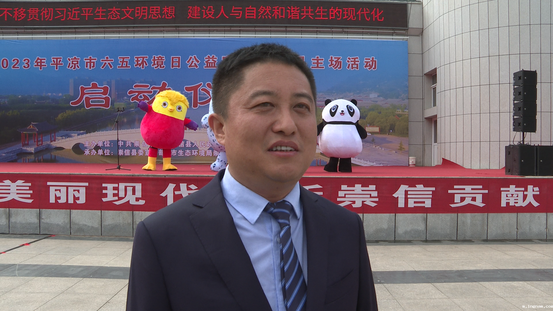 市生态环境局崇信分局局长黄立荣说:“近年来,崇信具始终以习近平生态文明思想为指导,认真践行“绿水青山就是金山银山”理念,深入打好污染防治攻坚战,县城区空气质量稳定达标、持续向好汭河、黑河地表水水质达到Ⅲ类水质标准,土壤环境安全可控,生态环境质量持续改善,人民群众对生态环境的满意度显著提升。2023年六五环境曰宣传主题为‘建设人与自然和谐共生的现代化’。动员社会各界积极投身建设美丽中国、实现人与自然和谐共生的现代化的伟大实践。我们呼吁全社会积极行动起来,共同履行环保责任,参与到保护生态环境中来,共同建设天蓝、地绿、水清的美丽崇信。”