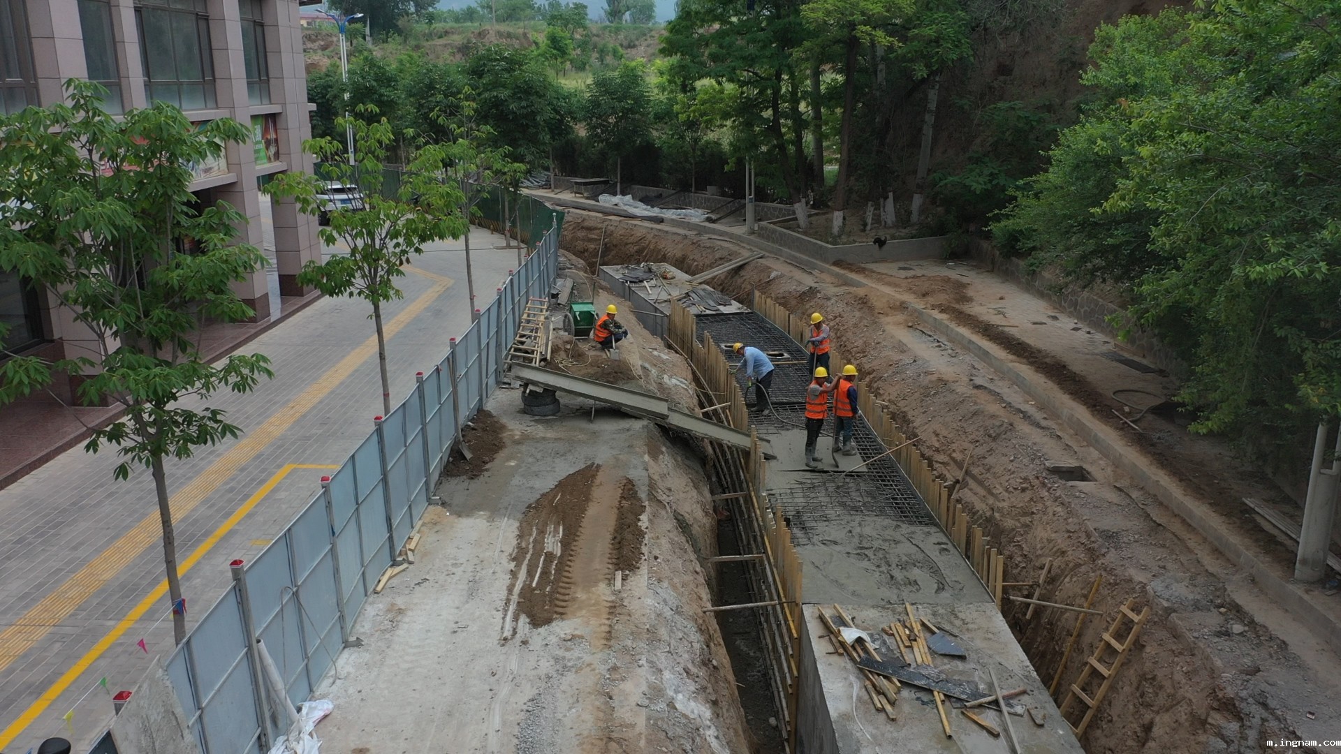 自今年5月份以来,崇信县城南排洪防涝工程正式施工,走进施工现场,伴随着机器的轰鸣声,铲车、挖机来回穿梭,施工人员各司其职、紧张有序的进行施工,力争高效、高质完成施工。