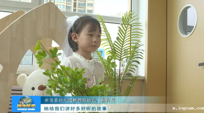崇信县幼儿园畅想班幼儿张昕瑶说:“薛老师是我最喜欢的老师,她很爱我们,每天照顾我们吃饭、睡觉,她给我们讲好多好听的故事”。